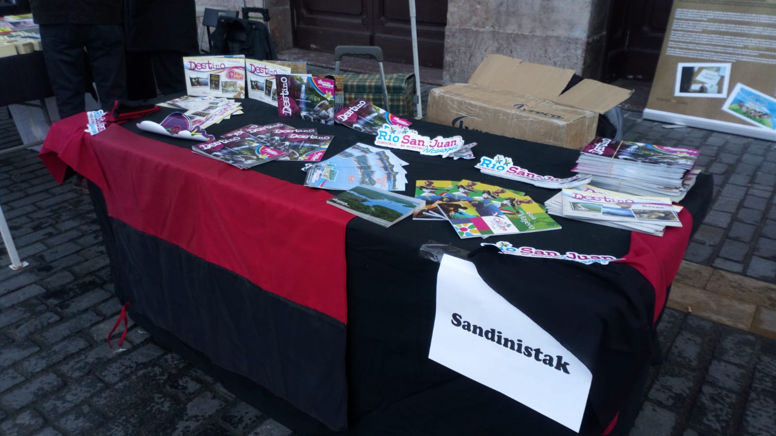 Entre los diversos puestos de organizaciones de solidaridad internacional que acompañaron la celebración se encontraba el de SANDINISTAK. Tendiendo un puente entre la patria de Martí y la de Sandino y tejiendo el amor y solidaridad entre los pueblos soberanos y países miembros del ALBA, ofreció con el apoyo de la Embajada de Nicaragua en Madrid, una ventana a la realidad de Nicaragua y su promoción como destino turístico como país de Paz gracias al buen Gobierno del Comandante Daniel y la Compañera Rosario.