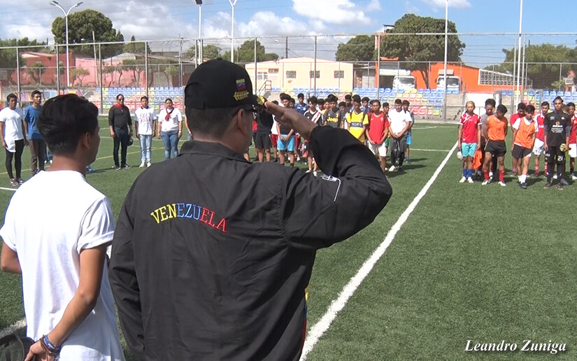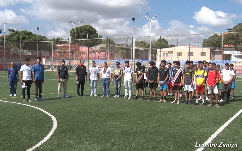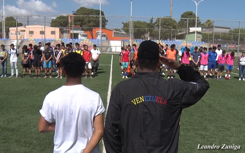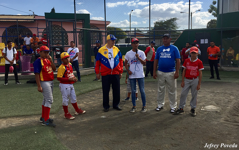 El juego con niños que residen en los alrededores del complejo deportivo Hugo Chávez Frías, ubicado en la colonia 14 de septiembre, abrió con el lanzamiento de la primera bola por parte del embajador de la República Bolivariana en Nicaragua ,Javier Arrúe.