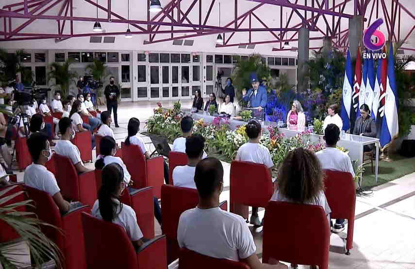 El Presidente de Nicaragua recordó cómo antes se cerraban las puertas del estadio a las familias más pobres, porque los «gobiernos neoliberales, que son los mismos que trajeron a William Walker, a los invasores yanquis, son los mismos; basta leer un poquito de historia y vamos a ver ahí los nombres de los partidos, liberales y conservadores, y en manos de quién, en manos de una oligarquía, partidos al servicio de los ricos, en tiempos en que los pobres no tenían derechos ni a la educación ni a la salud».