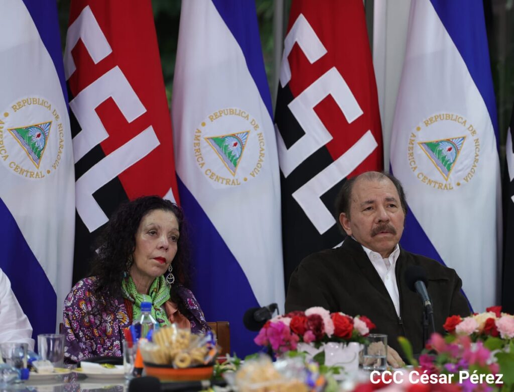 Durante su mensaje, el Comandante Daniel estuvo acompañado por la Vicepresidenta Rosario Murillo, el Canciller Denis Moncada Colindres, el Presidente de la Asamblea Nacional doctor Gustavo Porras, el primer comisionado Francisco Díaz Madriz, jefe de la Policía Nacional y por el General Julio César Avilés Castillo, Jefe del Ejército.