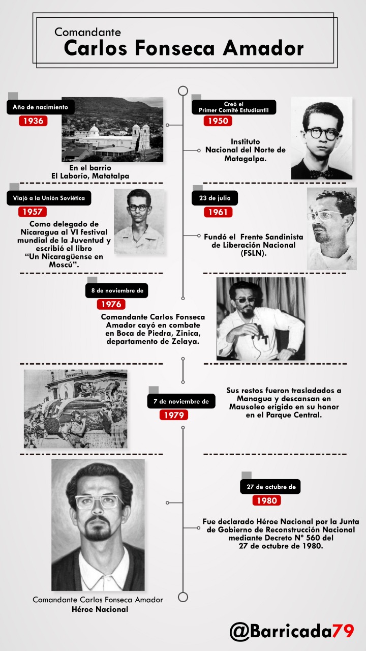En homenaje al 43 Aniversario del Tránsito a la Inmortalidad del Comandante Carlos Fonseca, el Equipo de Barricada comparte con sus lectores una breve reseña publicada por Stella Merlos y una infografía sobre su vida.